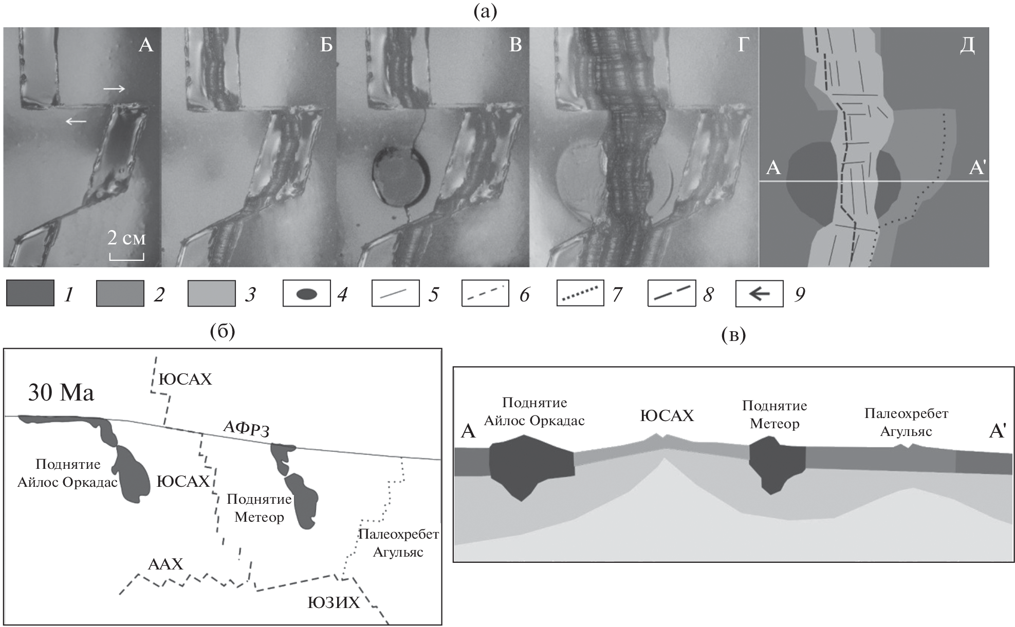 Физическое моделирование условий формирования подводных поднятий Метеор и Айлос Оркадас (Южная Атлантика)