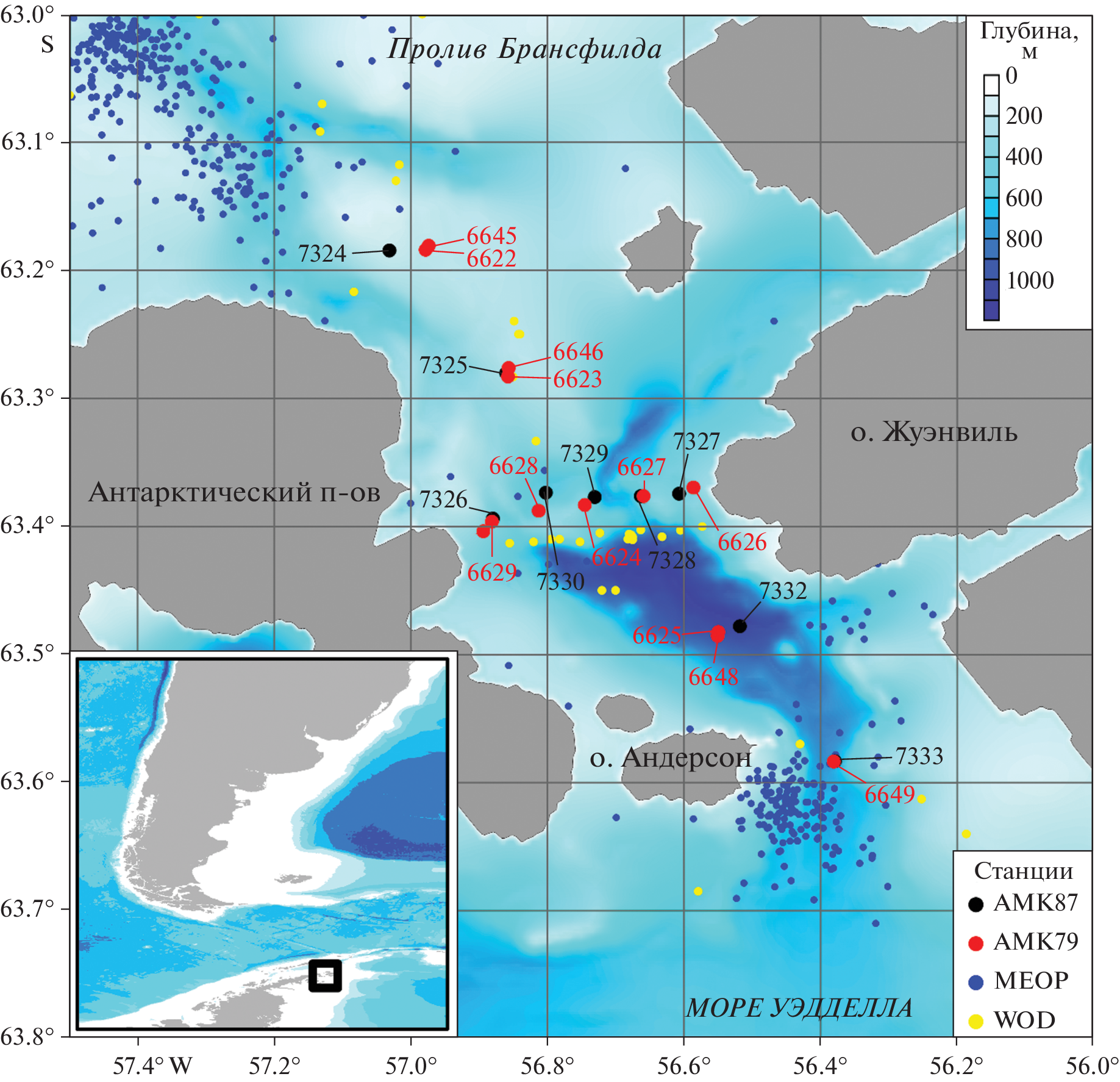 - Von Gyldenfeldt A.B., Fahrbach E., García M.A., Schröder M. Flow variability at the tip of the Antarctic Peninsula // Deep Sea Research Part II: Topical Studies in Oceanography. 2002. V. 49. № 21. P. 4743–4766. https://doi.org/10.1016/S0967-0645(02)00157-1