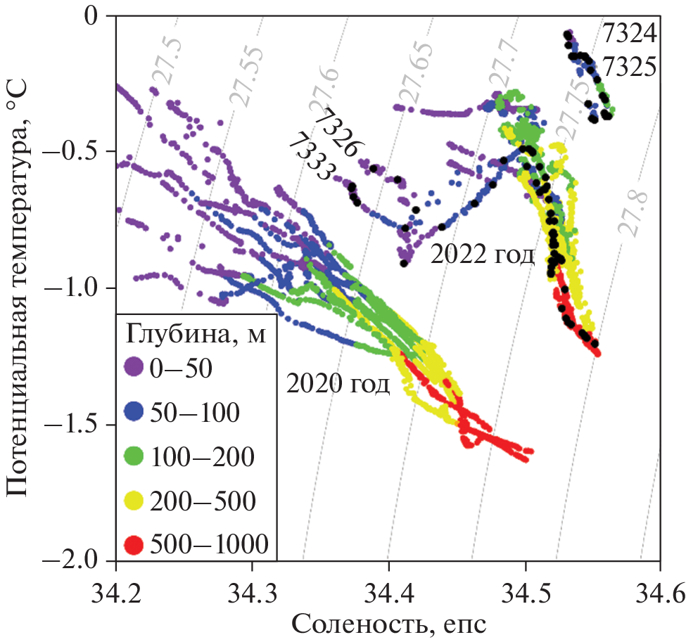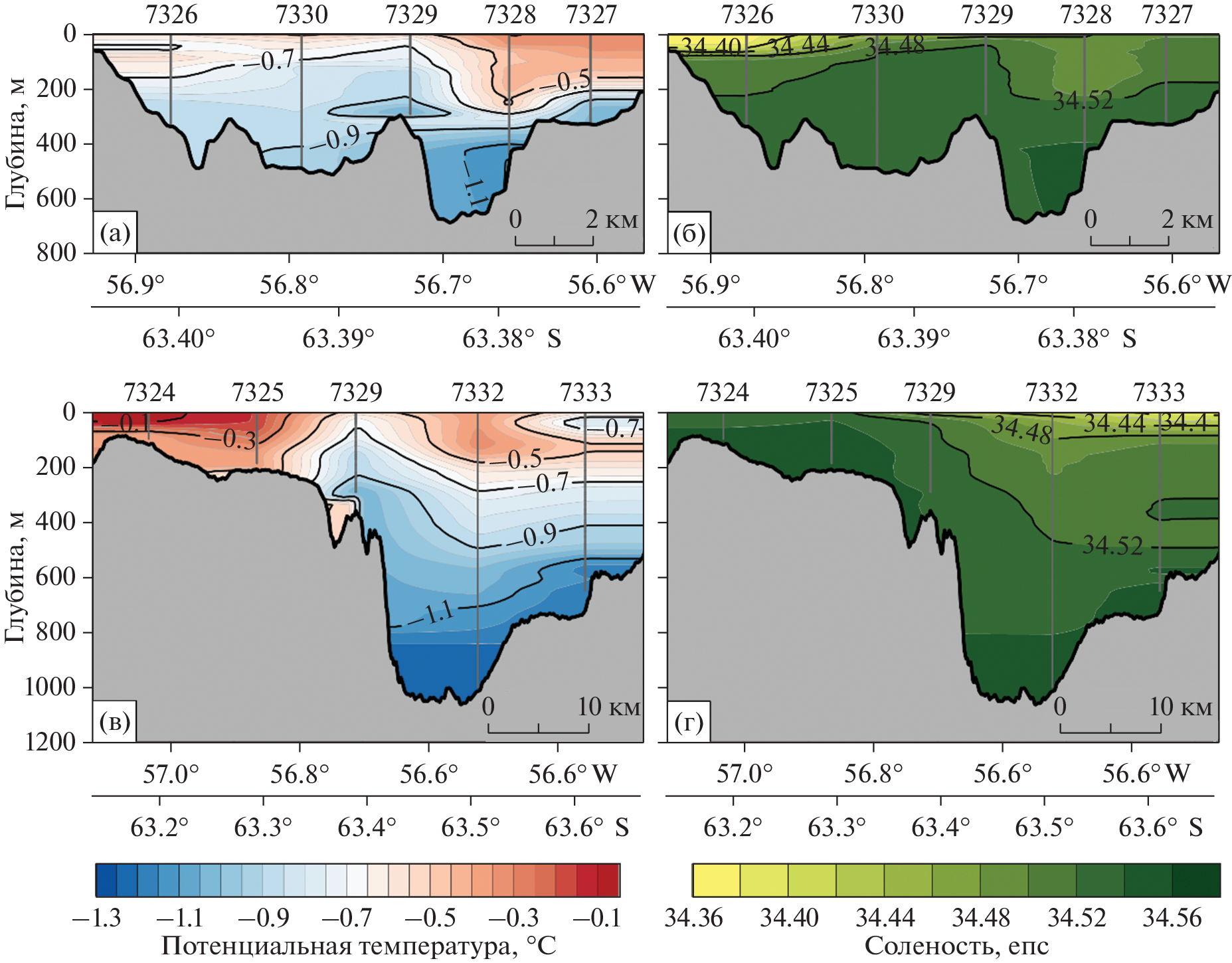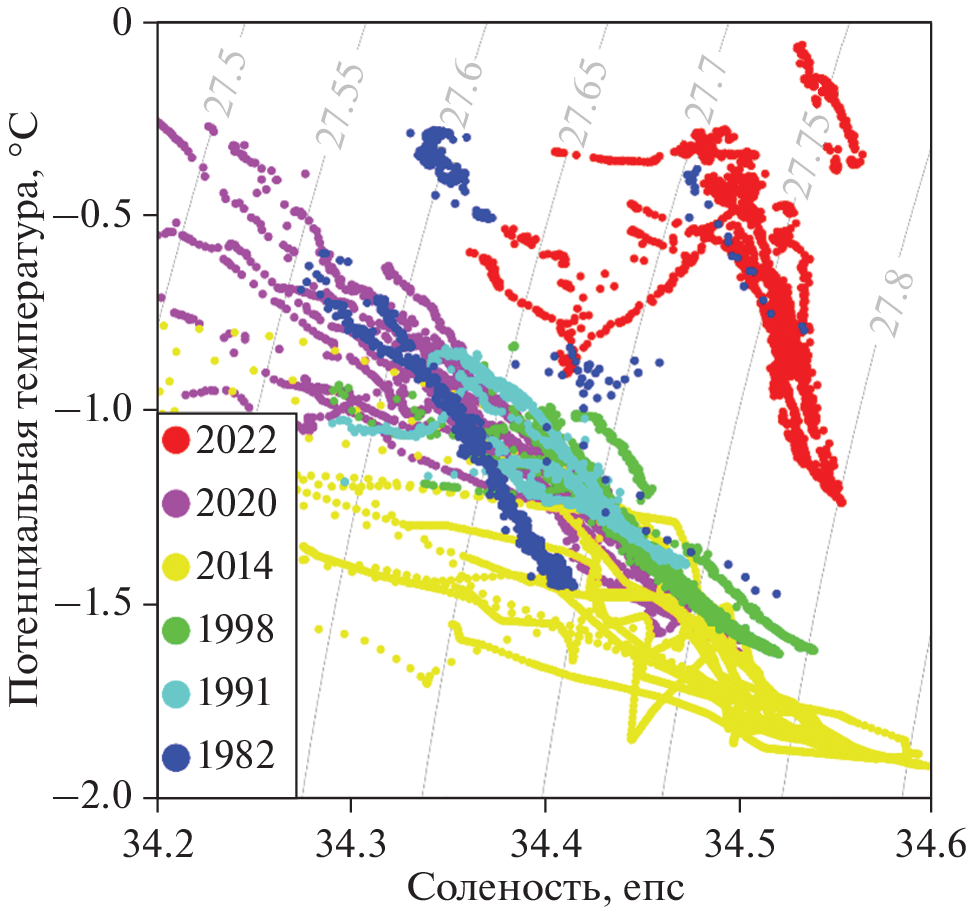 - Dotto T.S., Kerr R., Mata M.M., & Garcia A.E. Multidecadal freshening and lightening in the deep waters of the Bransfield Strait, Antarctica // Journal of Geophysical Research: Oceans. 2016. V. 121. № 6. P. 3741–3756. https://doi.org/10.1002/2015JC011228