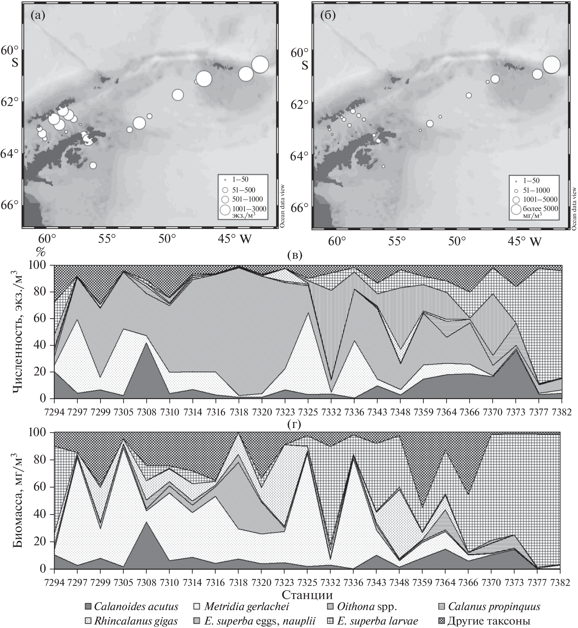 - Lee W., Kim S., Kang S.et al. Distribution and abundance of zooplankton in the Bransfield Strait and the western Weddell Sea during austral summer // Ocean and Polar Research. 2004. V. 26. No. 4. P. 607–618. https://doi.org/10.4217/OPR.2004.26.4.607