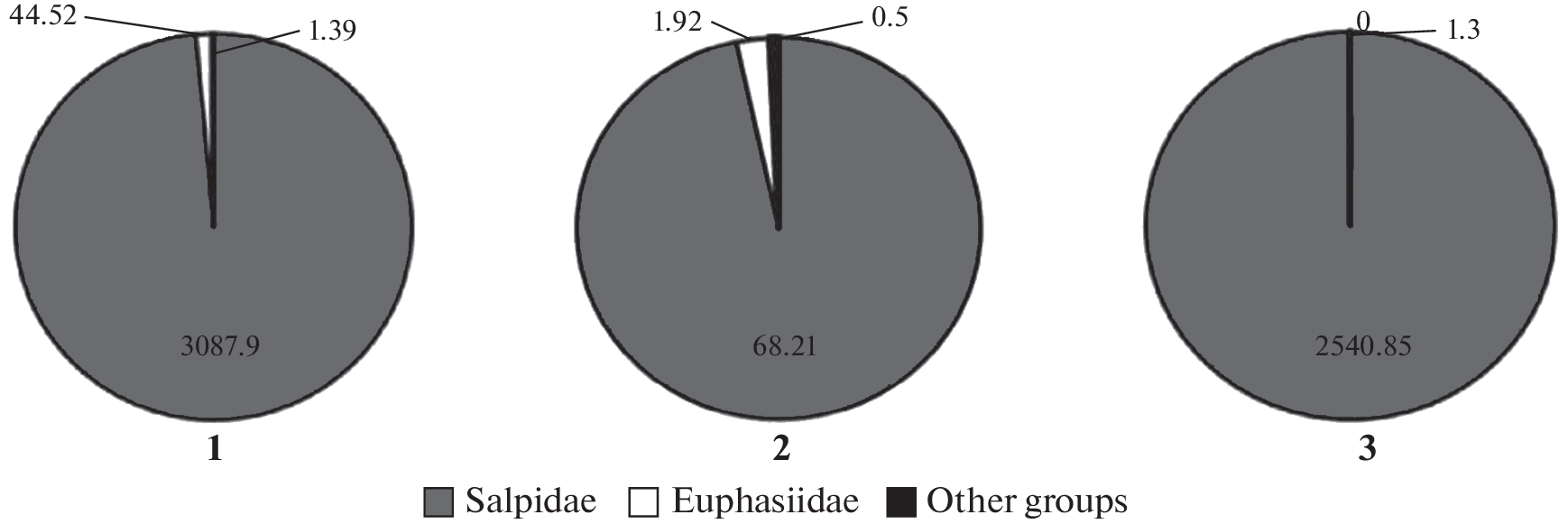 - Pakhomov E.A., Froneman P.W., Perissinotto R. Salp/ krill interactions in the Southern Ocean: spatial segregation and implications for the carbon flux // Deep-sea Research II. 2002. V. 49. P. 1881–1907. https://doi.org/10.1155/2010/410129