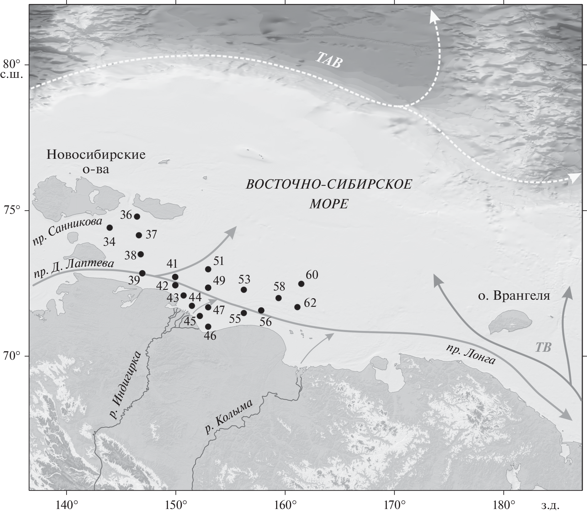 - Semiletov I.P., Dudarev O., Luchin V. et al. The East Siberian Sea as a transition zone between Pacific-derived waters and Arctic shelf waters // Geophysical Research Letters. 2005. V. 32. L10614.