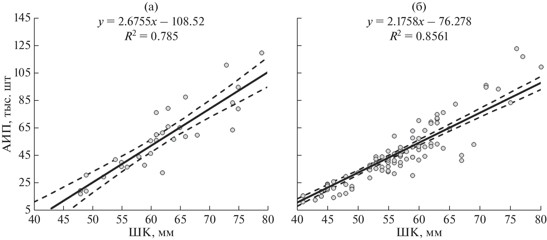 Представлен сравнительный анализ размерных и репродуктивных параметров краба-стригуна опилио Баренцева и Карского морей, оцененных в период 2005–2021 гг. У самок из Карского моря половая зрелость наступает при ширине карапакса (ШК) свыше 30 мм, а размер 50%-ного созревания равен 38 мм. Функциональная половая зрелость у самок краба Баренцева моря наступает при ШК > > 35 мм, а размер 50%-ного созревания значительно выше: 51 мм. Плодовитость особей одного размера, выловленных в Карском море, ниже плодовитости особей, отмеченных в Баренцевом море. Прирост количества икры с приростом ШК у самок Карского и Баренцева морей линеен и статистически различен (ANCOVA, p = 0.0327): 27 и 22 тыс. икринок при увеличении ШК на 10 мм, соответственно. В Карском море величины изученных параметров близки к величинам, оцененным для опилио арктических восточных морей: Чукотского и Бофорта. Большинство параметров баренцевоморской популяции были сопоставимы с параметрами популяций южной части нативного ареала (Японское море, Северо-Западная Атлантика). Различия в морфологических и репродуктивных показателях крабов Баренцева и Карского морей необходимо учитывать при организации их промысла и разработке стратегии рациональной эксплуатации этого вида в Карском море.