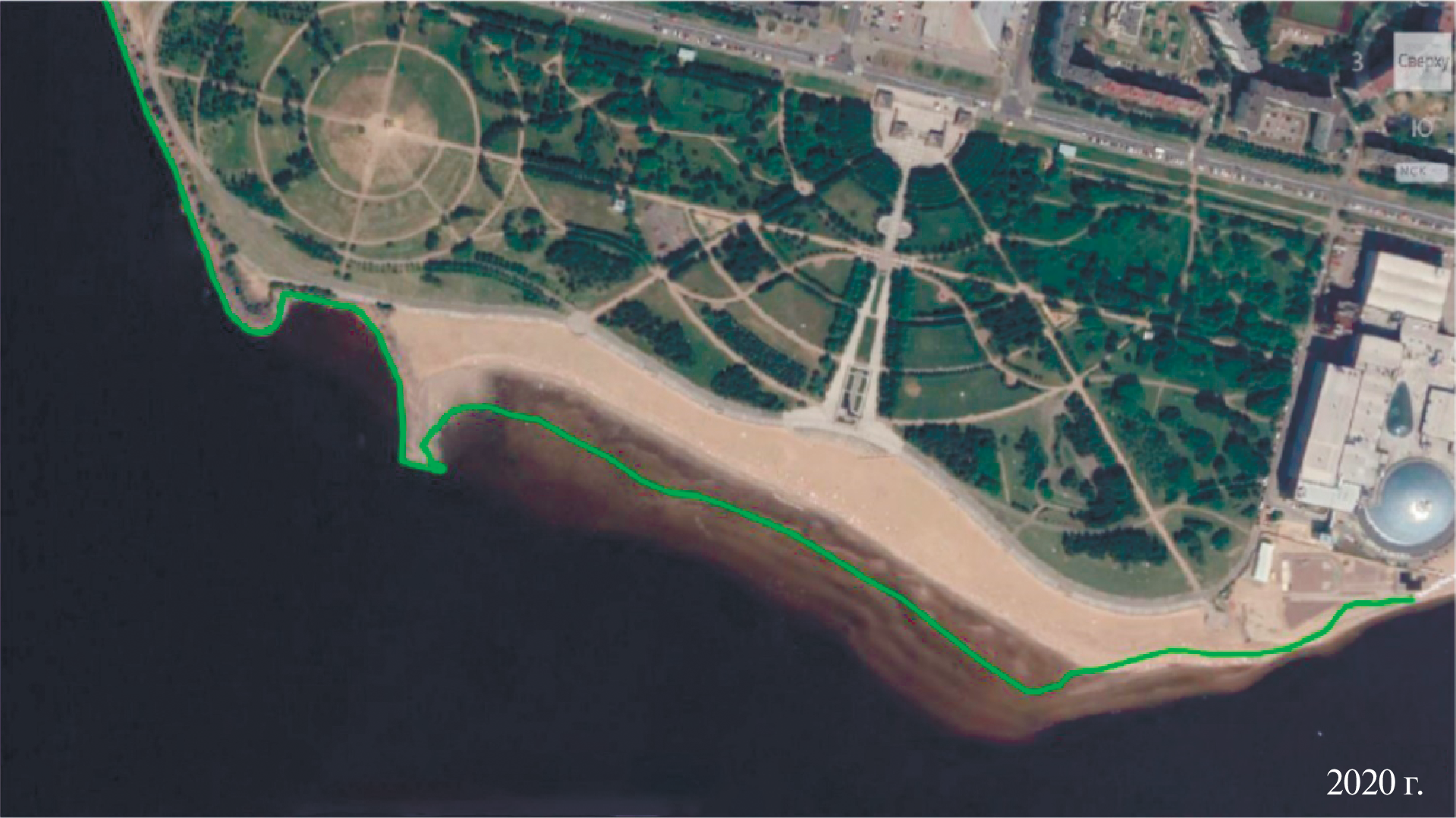 Changes in the coastal zone under the influence of currents of different nature and wind waves are being investigated. A sandy beach located in the water area of the “Park of the 300th Anniversary of St. Petersburg”, the Neva Bay of the Gulf of Finland of the Baltic Sea, is considered as an object. The beach is actively affected by wind waves and eventually washes away with the intensity of the retreat of the shore of about 4 m per year. For numerical modeling, a set of models is used: SWAN–wind-wave model and COASTOX-UN–a two-dimensional model of currents, sediment transport and bottom reformation. It was developed a model of the Neva Bay and the mouth of the Neva River from the Flood Prevention Facility Complex in the west to the river Neva near the Liteiny Bridge in the east. Based on the reanalysis of wind data, 36 strong storms were selected for a five-year period from 2014 to 2018, for the sequence of which numerical modeling of waves, currents and lithodynamic processes was carried out. It was obtained balances of alluvial and washouts after a ten-years simulated period for beach sectors. To verify the results, satellite images of the modeling area are used, it was found that the model adequately describes the main observed trends in the development of the beach.