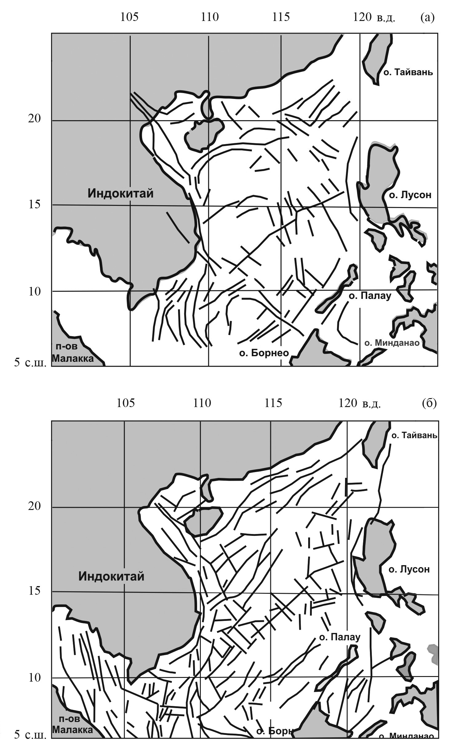 - Briais A, Patriat P, Tapponier P. Updated interpretation of magnetic anomalies and seafloor spreading stages in the South China Sea: Implications for the Tertiary tectonics of Southeast Asia // Journal of Geophysical Research. Solid Earth. 1993. V. 98 (B4). P. 6299–6328.