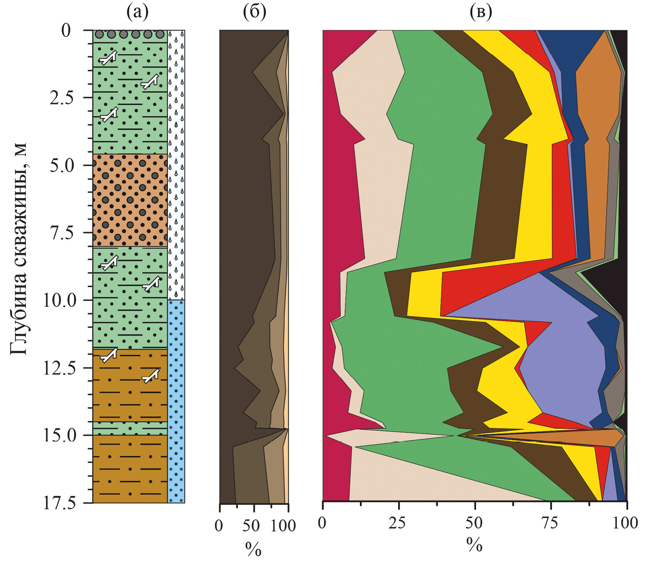 Таблица 7. Соответствие проанализированных горизонтов (см) выделенным типам минеральных ассоциаций