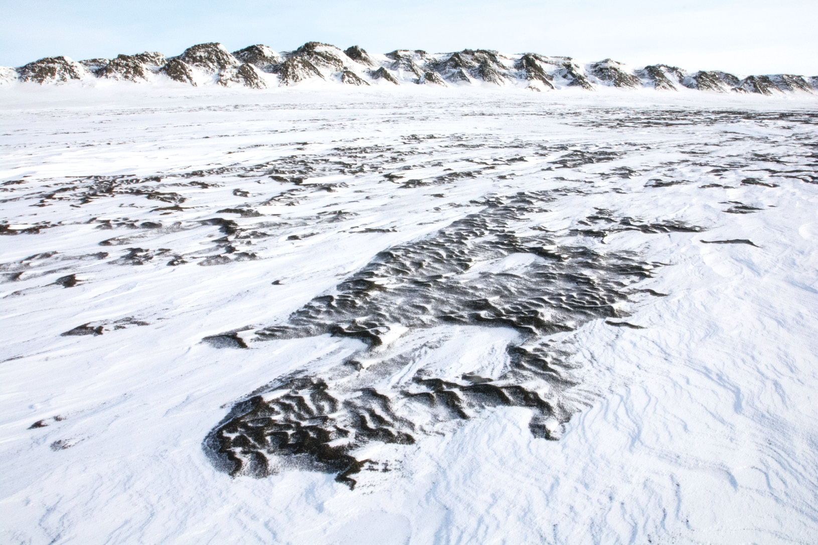 Рис. 11. Песчаные наносы на заснеженной ледовой поверхности губы Буор-Хая (фото автора)