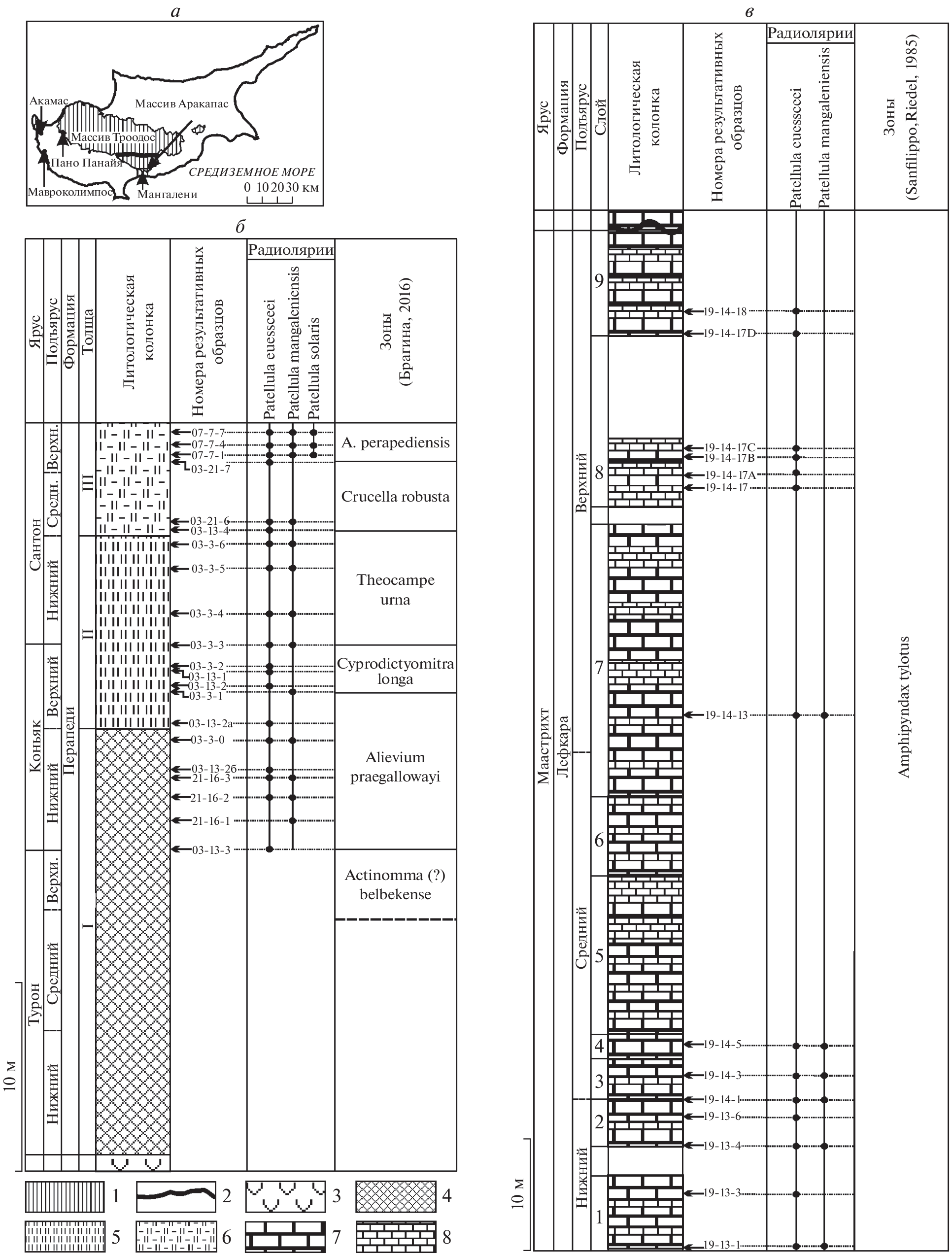 - Брагина Л.Г., Брагин Н.Ю. Радиолярии и стратиграфия кампан–маастрихтских отложений Юго-Западного Кипра // Стратигр. Геол. корреляция. 1995. Т. 3. № 2. С. 53–61.