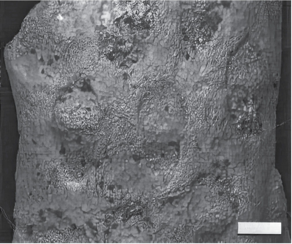 Уже после опубликования статьи (Вискова, 2011) Тэйлору были высланы (по его просьбе) оставшиеся после изготовления шлифов мелкие фрагменты колоний описанных юрских Eleidae. Изображение одного из таких фрагментов колонии Elea taylori Viskova, 2011 (рис. 2), выполненное с применением сканирующего электронного микроскопа, приведено в его публикации (Taylor, 2022а, с. 30, рис. 7E), как “a Jurassic bryozoan that shows no certain eleid traits”. Однако даже плохая сохранность этого крохотного участка колонии не мешает увидеть, что апертуры автозооидов полукруглые и имеют прямой проксимальный край. Они закрыты либо известковыми оперкулумами, либо включениями породы, заполнившей апертуры после утраты этих оперкулумов, т.е., слепками, имеющими характерную для оперкулумов полукруглую форму с прямым проксимальным краем. Можно увидеть также, что апертуры занимают дистальную половину плохо сохранившихся фасеток, а фасетки, закрывающие заметно расширенную дистальную часть автозооидов, имеют характерные ромбические очертания. Разве все эти особенности, хотя и не очень четко выраженные, не характерны для мшанок семейства Eleidae? И главное: вид E. taylori был установлен не на основе изучения только этого выбранного Тэйлором фрагмента колонии, а в результате исследования вполне презентабельной повторно изображенной здесь колонии (рис. 1, б), и шлифов из нее (Вискова, 2011, табл. VIII, фиг. 1а–1ж).