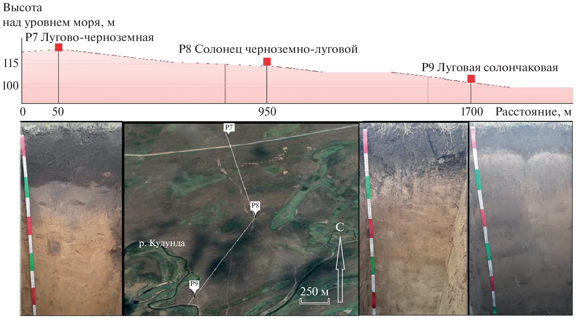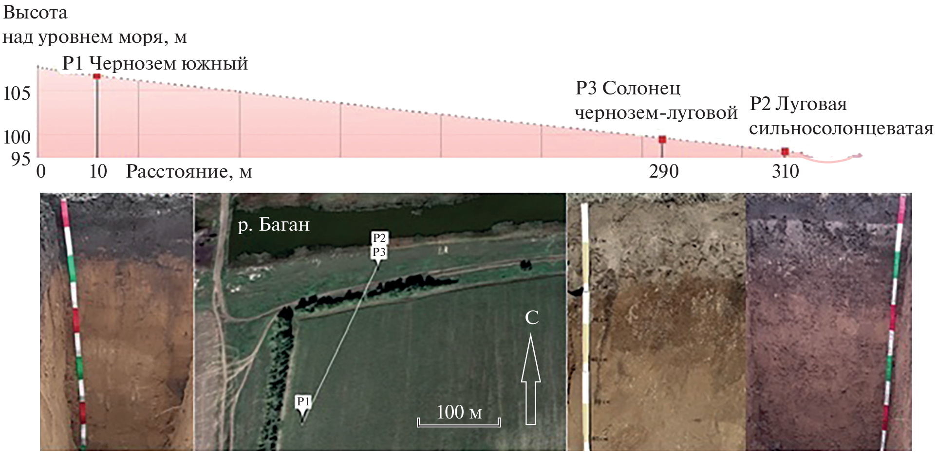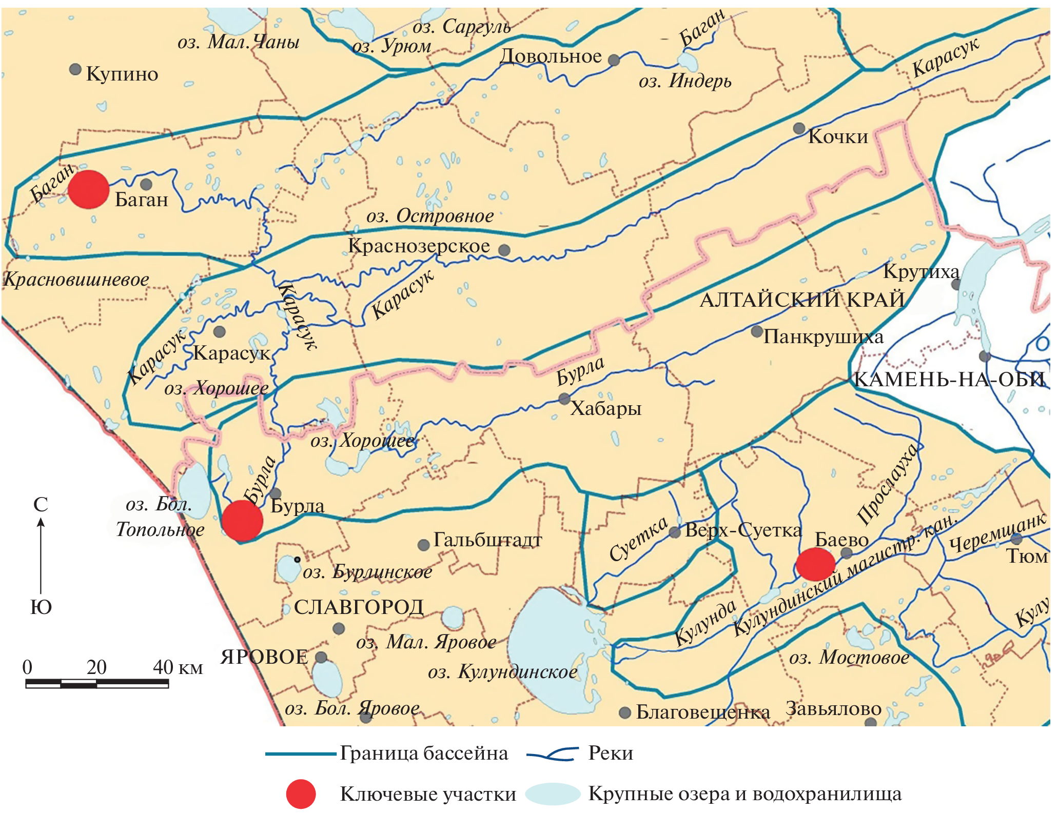 The surface of the Kulunda Plain is dissected by a system of ancient wide valleys, former runoff hollows, which have a very small slope (less than 1°). Rivers flow along these weakly expressed valleys, redistributing readily soluble salts throughout the territory. The regime of these rivers is characterized by a sharp and high flood wave and low (up to complete drying) runoff in the summer. The purpose of this work is to study the ion-salt system of soils of ancient runoff troughs of the Kulunda Plain, groundwater and river waters in order to identify modern processes of soil salinization. During floods, river water feeds close-lying groundwater, influencing its chemical composition. Studies of three key sites in the valleys of the Bagan (Novosibirsk region), Burla and Kulunda (Altai Territory) rivers took place in 2021–2022. Ground waters of varying degrees of mineralization (from 3.4 to 63.0 g/l) and lie close to the surface (2–5 m), which causes a wide distribution of saline hydromorphic soils in the study area. Differences in the salt state of soils in different valleys, groundwater and river waters are discussed. The degree of salinization of soils depended on their granulometric composition. The high content of physical clay contributed to the rise of salts with groundwater and their accumulation in the soil profile. A large amount of exchangeable sodium in the soil absorbing complex of the studied soils (more than 3–5 cm (eq)/kg), the predominance of easily soluble sodium salts in the soil solution with its low mineralization, as well as the alkaline reaction of the soil medium indicates the manifestation of the process of soil salinization.