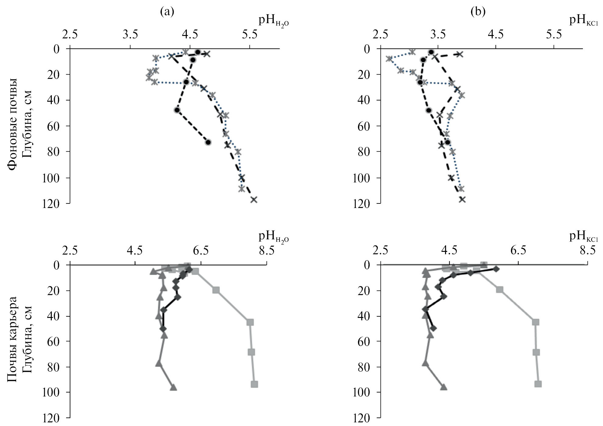 Глубина, см | Фоновые участки | Участки на территории карьера | ||||