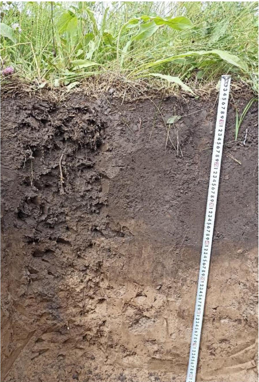 Характеристика обследованного участка. Объектом исследования являются черноземы (Haplic Chernozems) территории Базового экспериментального комплекса (БЭК) Института оптики атмосферы СО РАН, расположенного на древней террасе правого берега реки Ушайки (правый приток Томи, бассейн Оби), в восточной части макросклона Томь-Яйского междуречья с абсолютными отметками 152–160 м и доминирующими уклонами местности 0.3°–3.0°. Здесь находится самый север ареала черноземов Томской области, где данные почвы встречаются в виде небольших участков [12]. Материнскими породами являются лёссовидные суглинки еловской свиты. Это определяет низкую пространственную вариабельность свойств гумусового горизонта и относительную простоту структуры почвенного покрова [14]. Доминирующими являются темно-серые почвы с промывным типом водного режима [24]. Согласно карте биомов России [15], на рассматриваемой территории распространен западно-сибирский южный мелколиственный биом. По классификации Кеппена–Гейгера климат территории снежный, гумидный с теплой весной (Dbf; snow fully humid with warm summer) [41], средняя температура июля и января составляет +17.7 и –17.0°С соответственно, среднегодовая сумма осадков – 400 м при коэффициенте увлажнения по Высоцкому–Иванову 1.0.