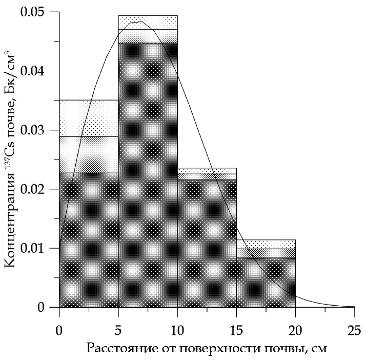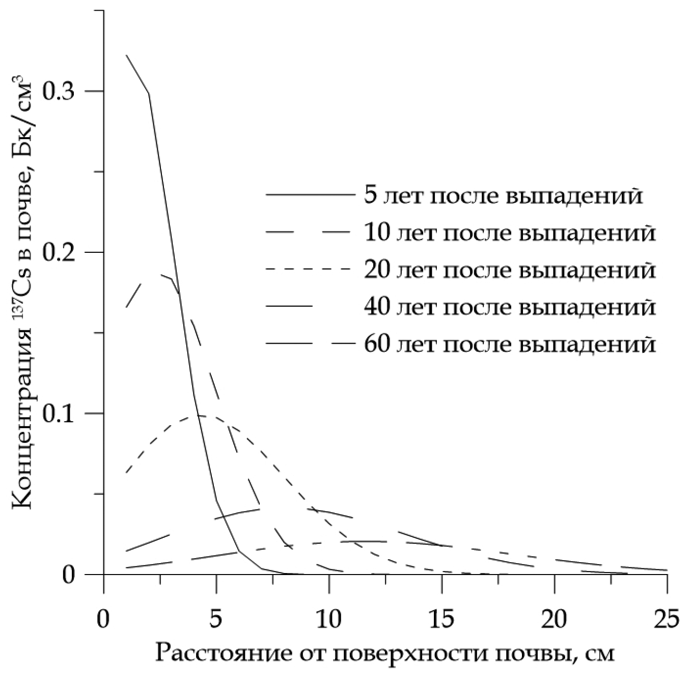 Для искусственных радионуклидов, таких как 137Cs, поступивших на поверхность почвы в результате радиоактивных выпадений одним из наиболее значимых факторов, оказывающих влияние на накопление в растениях, является вертикальное перераспределение в почвенном профиле с течением времени. Кроме того, его учитывают при расчете мощности дозы гамма-излучения и эффективной дозы внешнего облучения человека [4, 19, 27, 33].