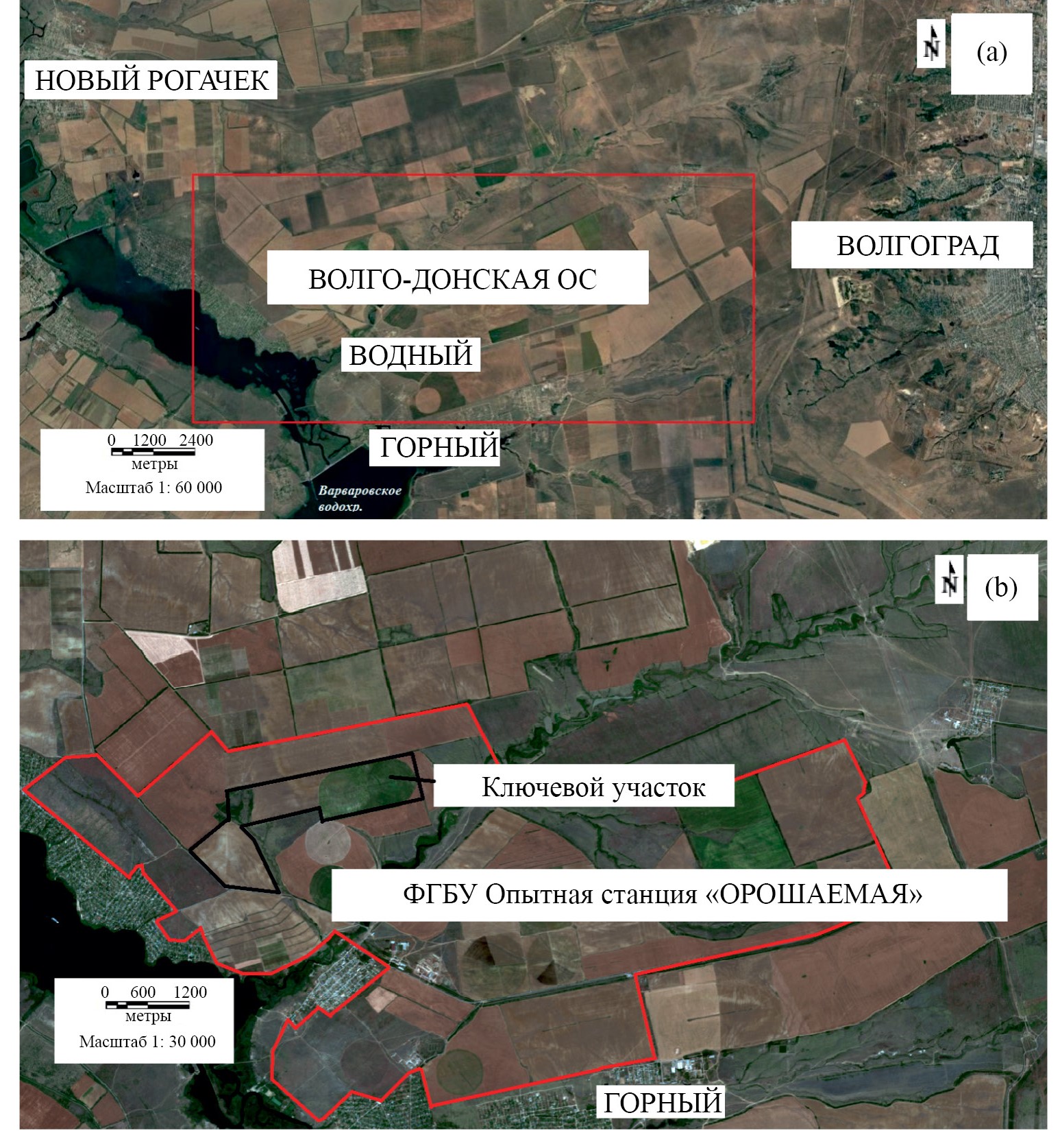 Объектом изучения стала Волго-Донская оросительная система (ОС), расположенная на юге Приволжской возвышенности в Волгоградской области. Ключевой участок исследования находится в границах ФГБУ “Опытная станция “Орошаемая”, которая занимает центральную часть Волго-Донской ОС (рис. 1).