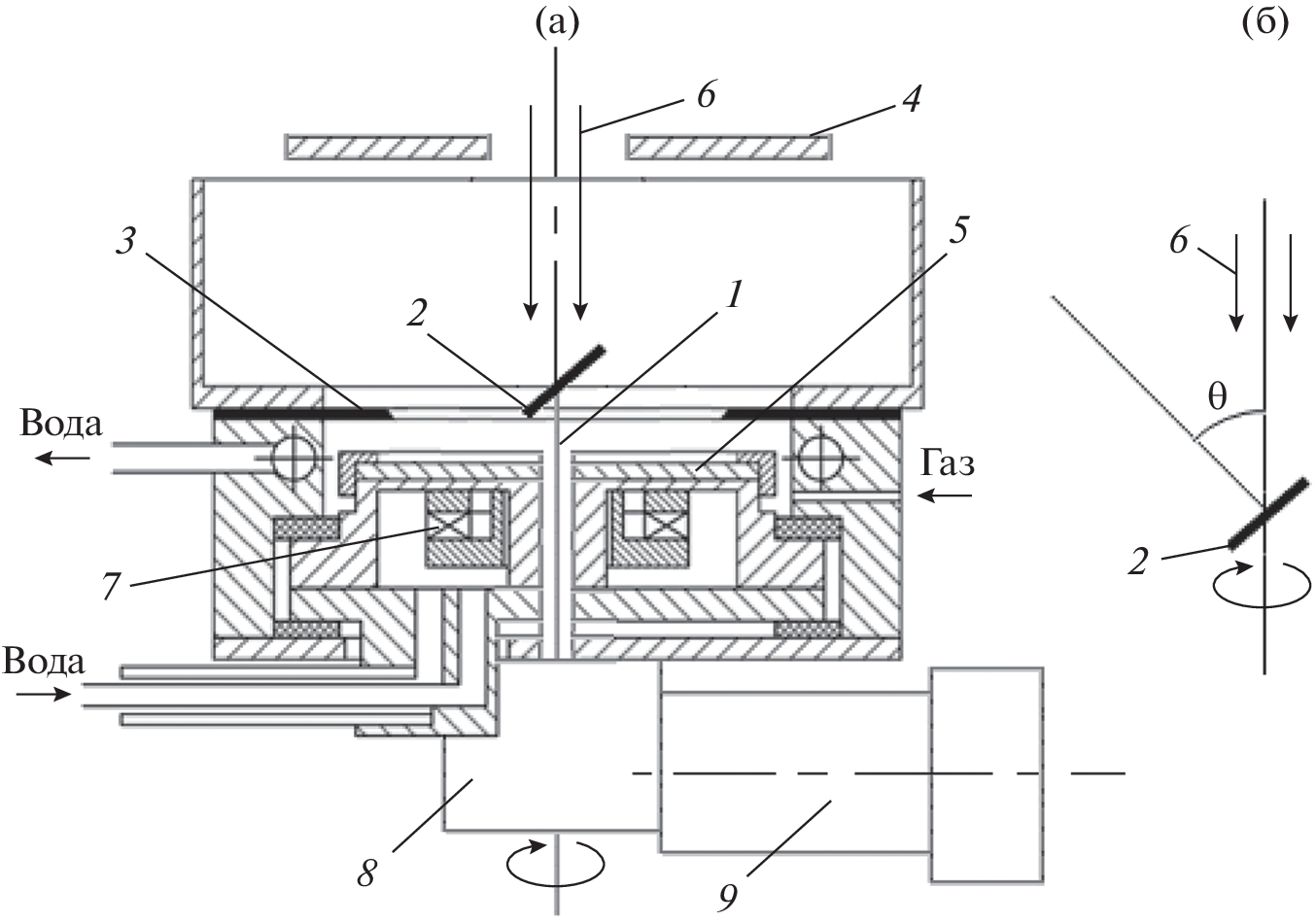 A planar magnetron with a rotating central anode has been developed. The central flat anode, which functions as a target sputtered by an ion beam, is installed with the possibility of rotation and at an angle of 45°–50° relative to the direction of incidence of the sputtering ion beam, and the anode rotation axis coincides with the symmetry axis of the ion beam. Calculation of the sputtering coefficient of the central copper anode of the magnetron shows that, under oblique incidence of sputtering ions and all other conditions being equal, the sputtering coefficient of the copper anode of the magnetron increases from six to nine atoms per incident ion, while the maximum accuracy of sputtered copper atoms on the growth surface of the substrates is achieved. The planar magnetron of the proposed design has wider functionality, in particular, in the synthesis of nanostructured TiN–Cu composite coatings. The homogeneous globular structure of the growth surface of the TiN–Cu coating with globule sizes in the range of 50–100 nm indicates a normal (unfaceted) growth mechanism. The microhardness of the coatings is approximately 42 GPa.