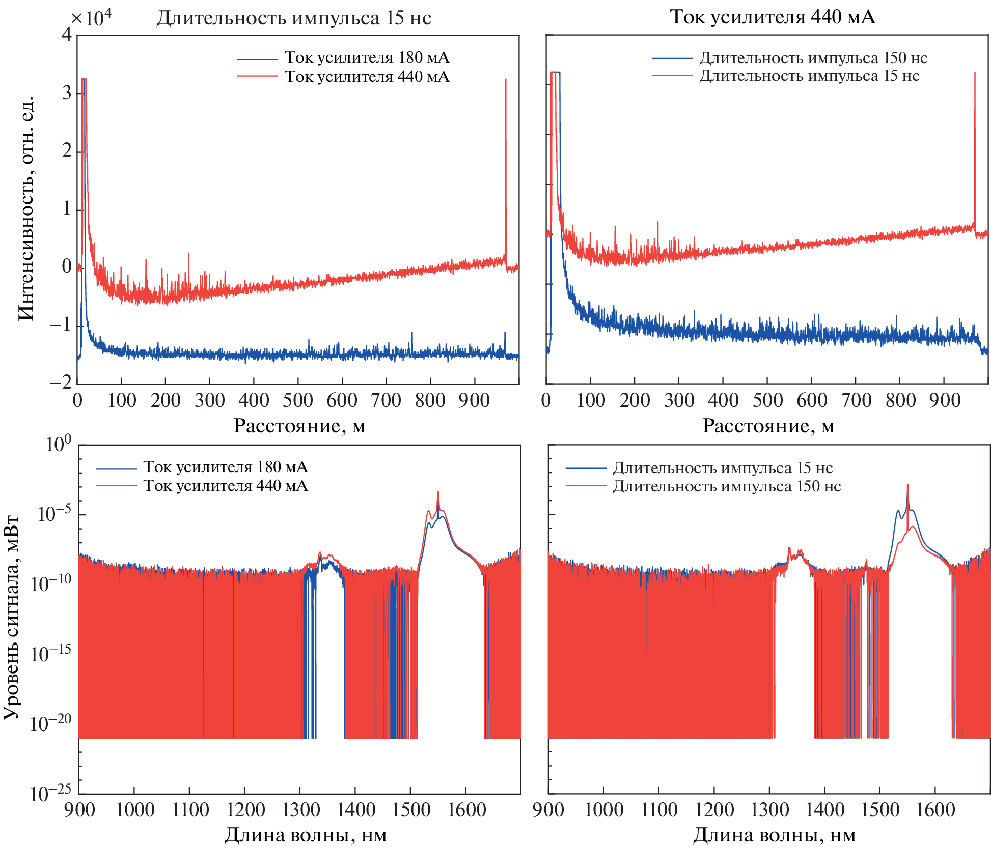 Проводится анализ спектральных, пространственных и временных характеристик зондирующего импульса в опытном образце волоконно-оптического распределенного акустического датчика. Получены зависимости спектрального распределения сигнала, среднего уровня сигнала и видности интерференционной картины от длительности импульса источника излучения и величины тока накачки оптического усилителя. Предложены направления дальнейших исследований в этой области. Собранные данные позволили сделать выводы о возможностях снижения стоимости подобных установок и пригодности предлагаемой конструкции к эксплуатации.