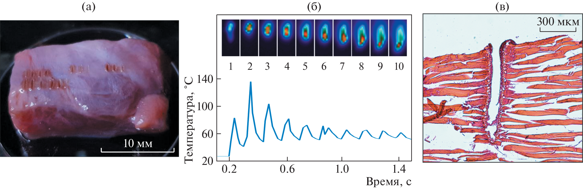 An apparatus for studying the processes of laser action on various materials, including biological tissue, is described. The system makes it possible to obtain thermograms of the sample surface, conduct high-speed video recording, and record acoustic signals in a wide frequency range during experiments. The system was tested using a pulsed nanosecond high-frequency laser source with a wavelength of 3.03 μm. The samples were exposed to pulses with a duration of 1.5 ns and a frequency of 8 MHz. It is shown that it is possible to use a laser system to obtain incisions on biological tissues of various types without carbonization. The obtained experimental data made it possible to clarify the mechanism of the action of laser radiation on the surface of water-saturated biological tissues.