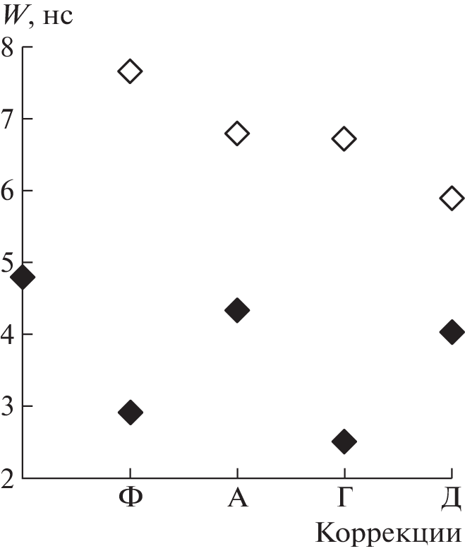 The systematic error in measuring the duration of flashes by the correlation counter that was developed by the authors earlier on the basis of a digital oscilloscope and a computer has been reduced by 1–2 ns by mathematical processing of input pulses and by correction of their recording times. The variance in the measured duration and delay of flashes does not change when the correction is applied. The technique has been tested on model flashes, and the time of sonoluminescence flashes has been clarified. The counter can be used to measure other fast events, e.g., in nuclear physics.