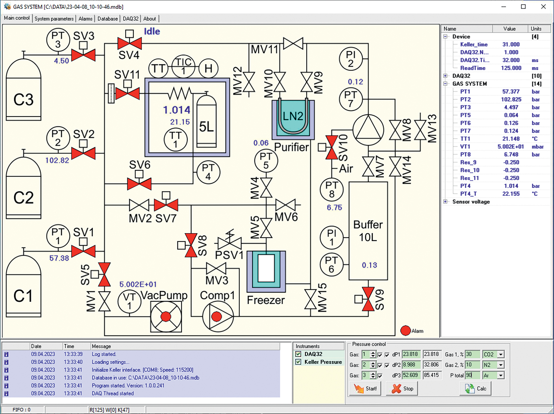 Рис. 4. Окно управляющей программы газовой системы.