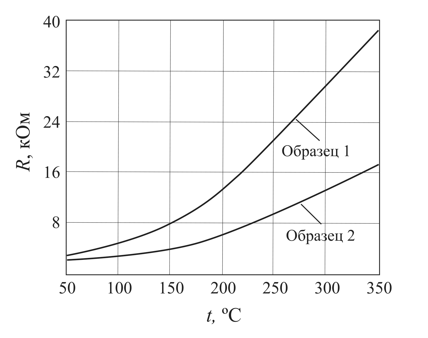 Рис. 2. Усредненные зависимости электрического сопротивления от температуры для двух экспериментальных образцов термодатчиков.