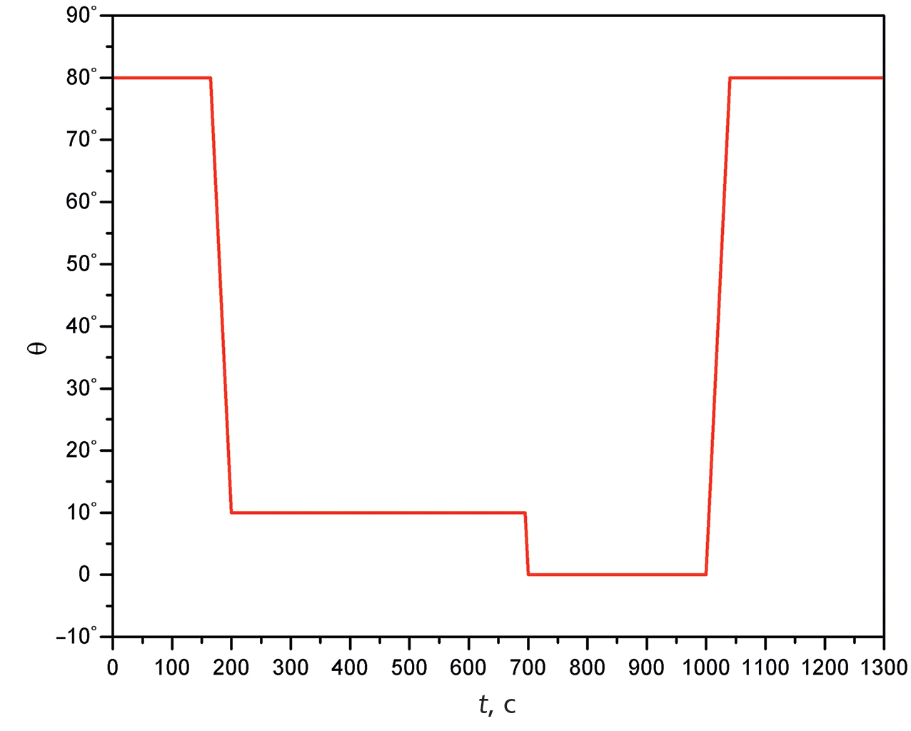 Рис. 2. Временная диаграмма угла поворота ловушки с временем удержания 300 с.