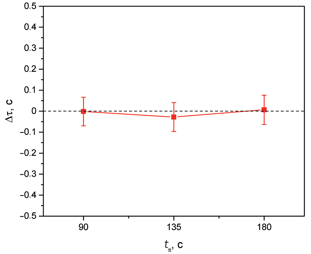 Рис. 8. Зависимость поправки к результату измерения времени жизни нейтрона от времени поворота ловушки на 180°. Угол мониторирования 7.5°.