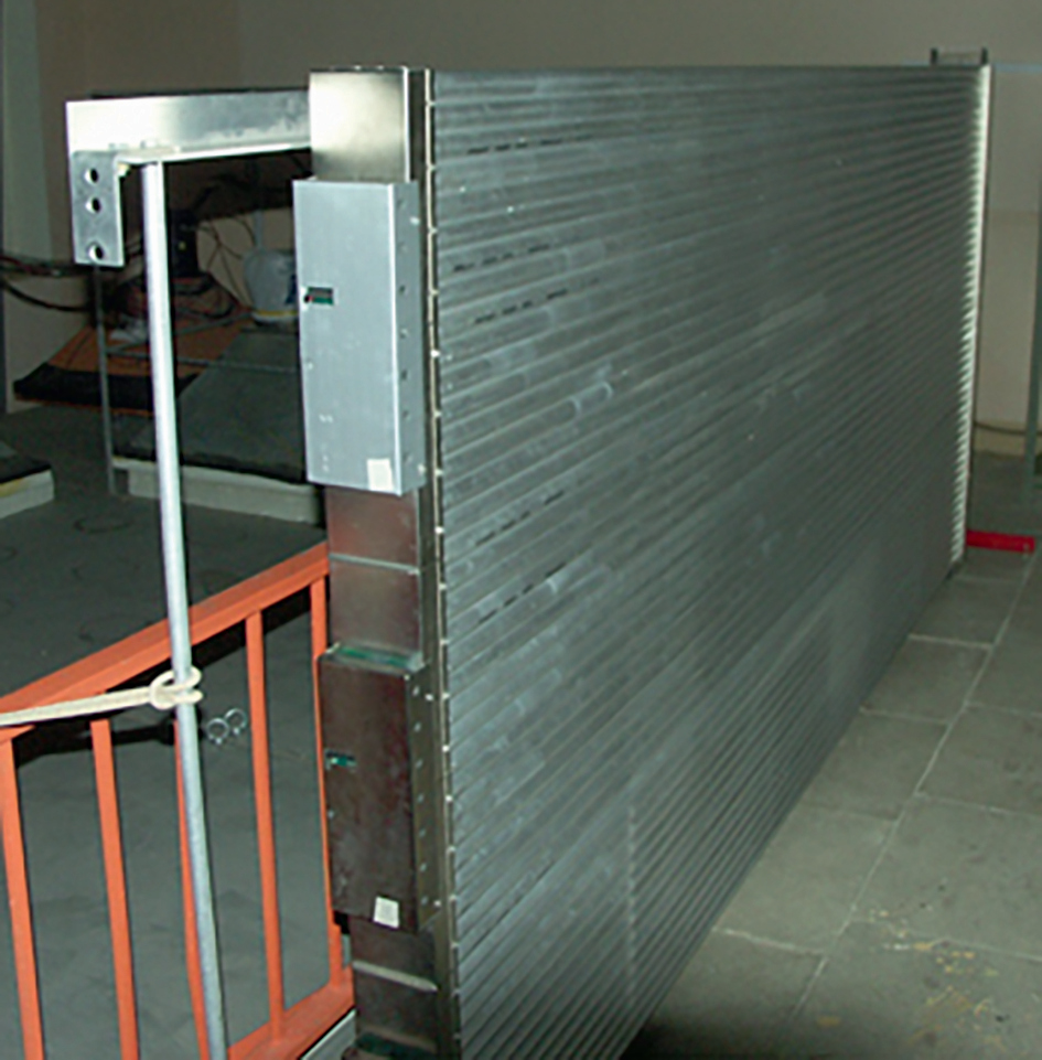 Детектор на дрейфовых трубках представляет собой многоканальную детектирующую систему, состоящую из четырех однопроекционных координатных плоскостей. Каждая координатная плоскость формируется из двух состыкованных без зазора камер, состоящих из дрейфовых трубок. Каждая камера дрейфовых трубок размером (Д × Ш × В) 3520 × 1460 × 210 мм3 смонтирована на каркасе из дюралюминиевого швеллера (рис. 2, 3). Две состыкованные камеры монтируются в несущем каркасе годоскопа на единой раме из стального швеллера.