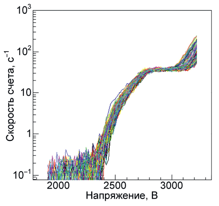 Рис. 8. Счетные характеристики дрейфовых трубок.