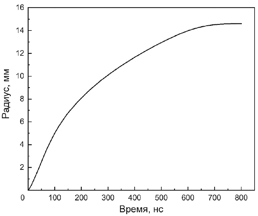 Рис. 11. Зависимость r(t), полученная из интеграла временного спектра.