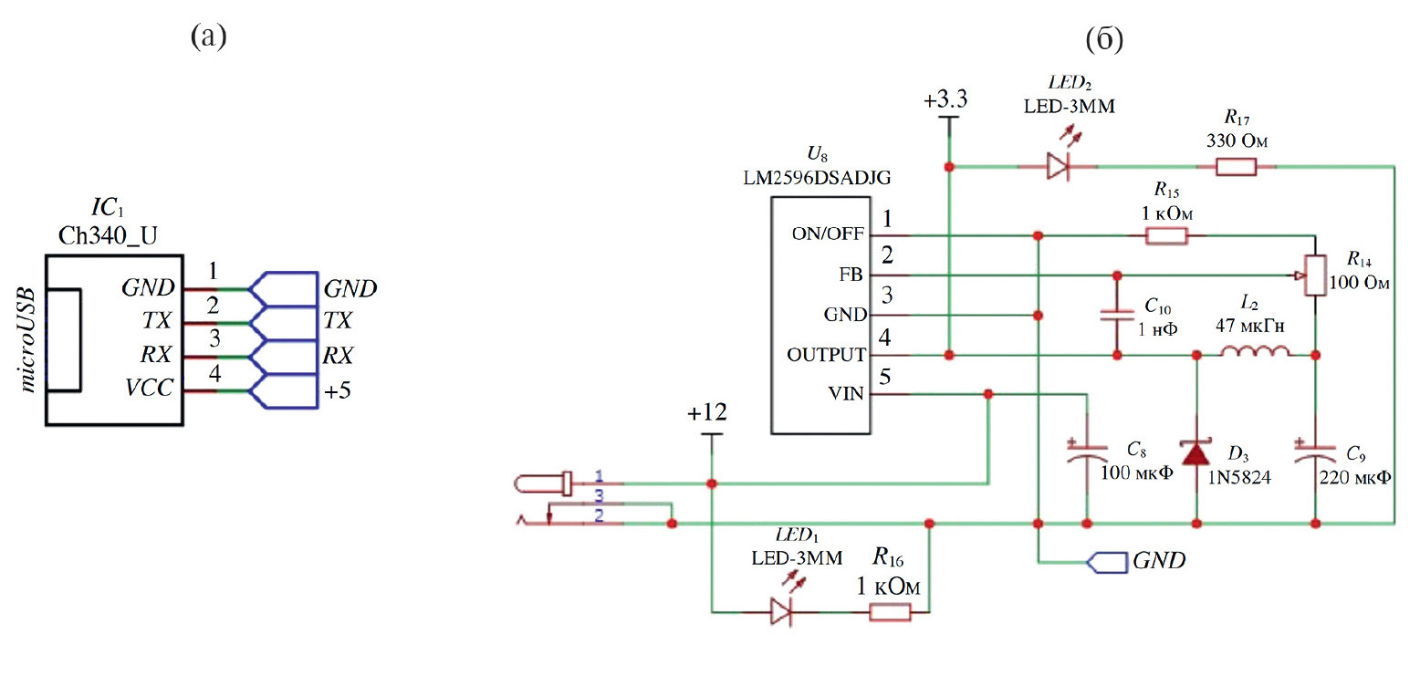 Рис. 4. USB-конвертер (а) и стабилизатор напряжения (б).