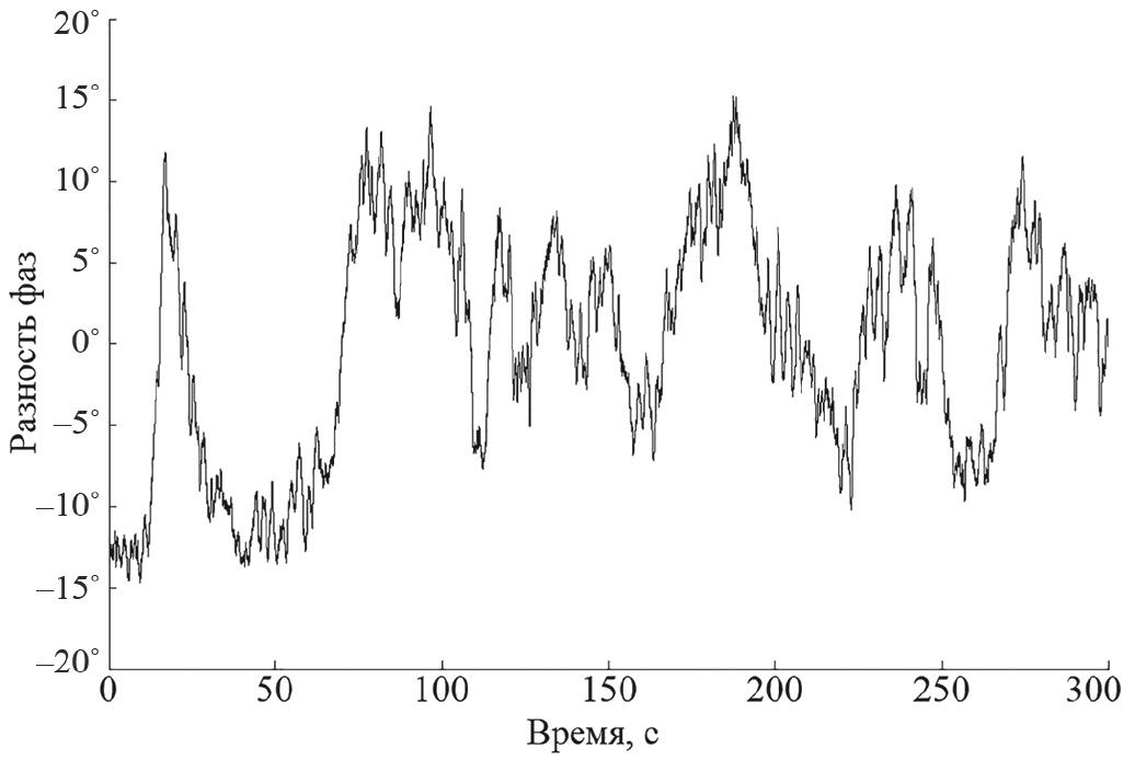 На рис. 7 показан пример реализации разности фаз между принятыми ортогонально-поляризованными сигналами этого же сеанса измерений.