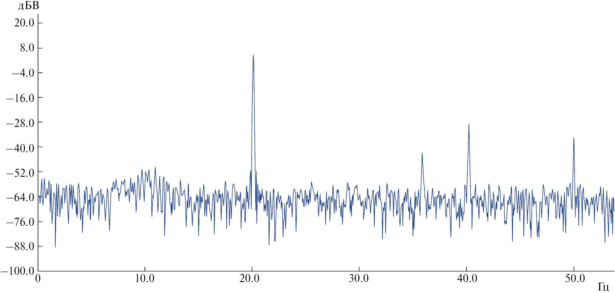 Рис. 4. Спектр сигнала приемника при частоте оптического прерывателя 20 Гц.