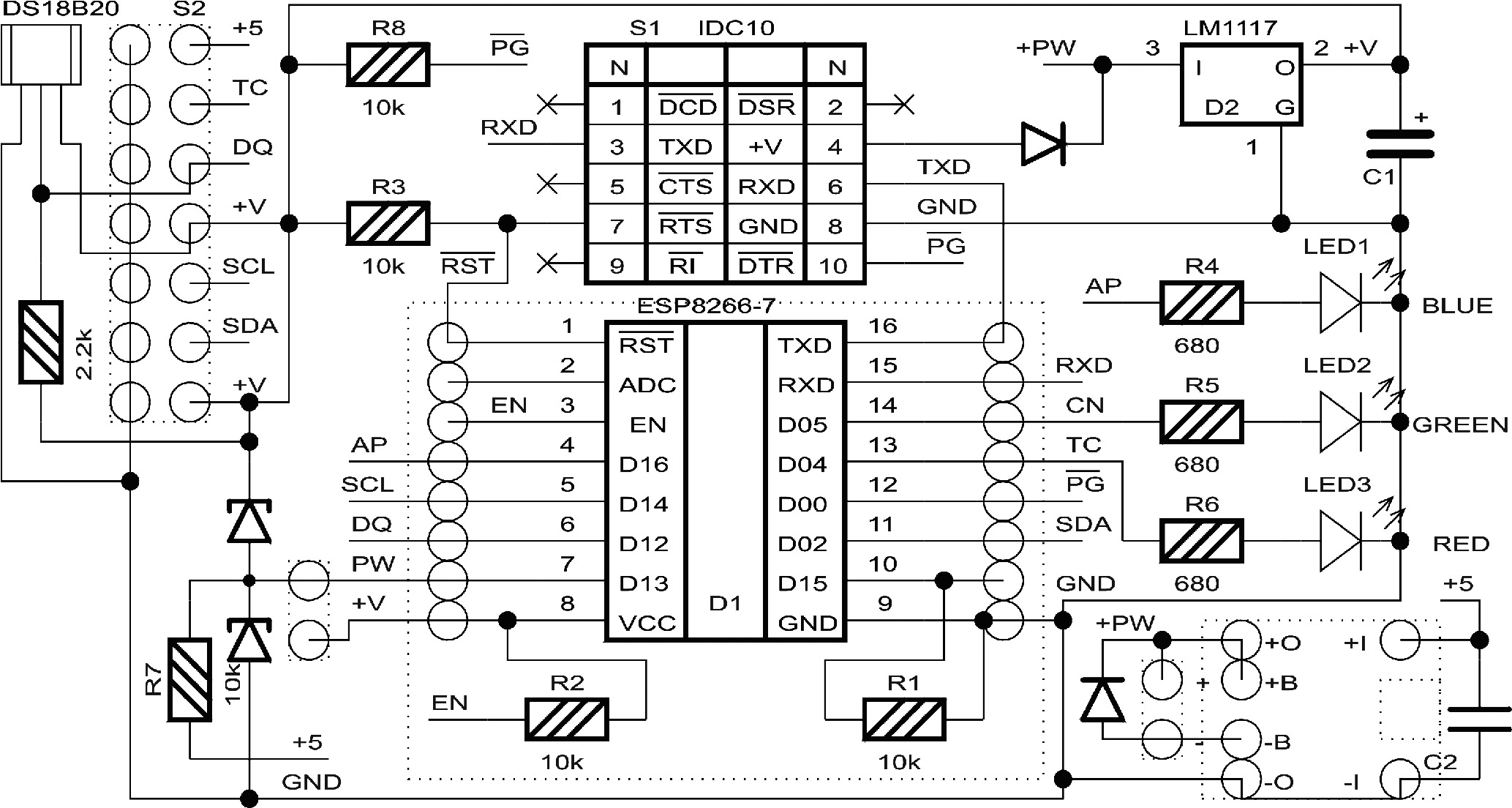 - модуль микроконтроллера D1 ESP8266-07;