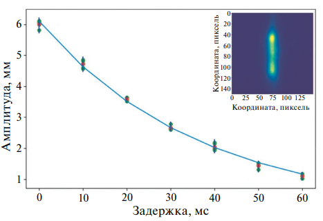 На рис. 9 показана зависимость амплитуды колебаний от времени задержки при токе пучка Ib = 0.7 мА.