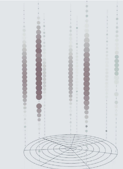 Задача контроля характеристик измерительных каналов нейтринного телескопа требует от ЛКС необходимости засветки всех фотодетекторов установки. На рис. 11 представлен пример события, инициированного лазером, входящим в состав ЛС6 на кластере 9. Лазер расположен на расстоянии 270 м от якоря гирлянды. Сработавшие каналы кластера выделены кружками, площадь которых пропорциональна логарифму заряда зарегистрированного сигнала. Градации серого характеризуют время регистрации сигналов.