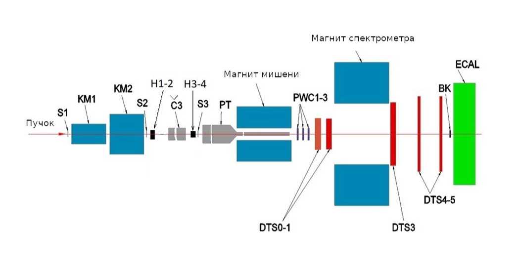 - спектрометр установки состоит из 57 плоскостей трековых детекторов и широко-апертурного магнита;