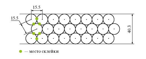 Рис. 4. Схема расположения трубок диаметром 15 мм в дрейфовых камерах из майлара.