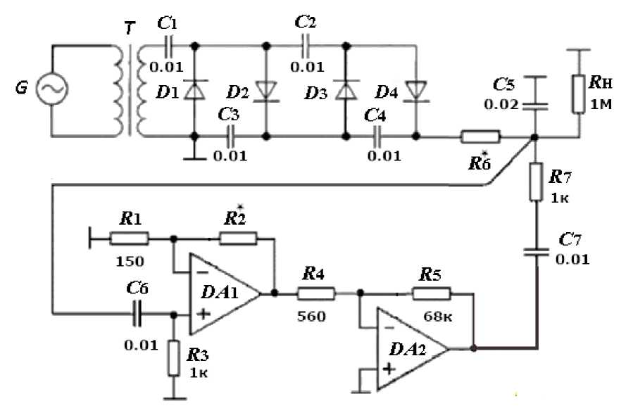 Схема источника питания с заземленной вторичной обмоткой трансформатора показана на рис. 1. На схеме буквой “G” обозначен генератор синусоидальных колебаний ГЗ-118.
