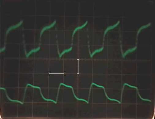 Рис. 2. Осциллограммы сигналов на выходе генератора и выходе схемы умножения.