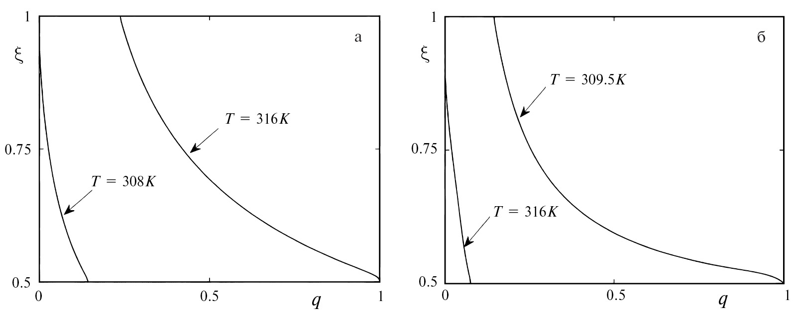 Задача решается в рамках системы определяющих соотношений для СПФ, приведенной в разд. 2 и с материальными функциями и константами, значение которых приведено в разд. 3. Подстановка (6.2) и (6.4) в (3.2), (3.3) дает дифференциальное соотношение, связывающее и q.