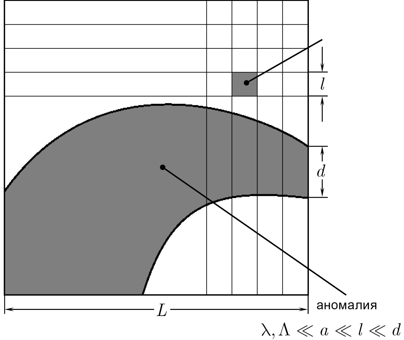 На рис. 3 изображен радиолокационный кадр со стороной , элемент разрешения локатора (а) и квадрат, по элементам которого проводится усреднение (l). Характерные масштабы: км, км, м.