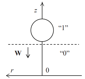 Предполагается, что в отсутствие облака плоский слой находится в гравитационном равновесии в поле тяжести с ускорением W (область «0» на рис. 1). Слой отделен контактным разрывом от газа меньшей плотности, который также находится в равновесии и занимает область «1». В начальный момент времени в области «1» размещается уплотнение с заданным распределением плотности ρ, скорости V и внутренней энергии E . Возникающее движение описывается системой газодинамических уравнений вида