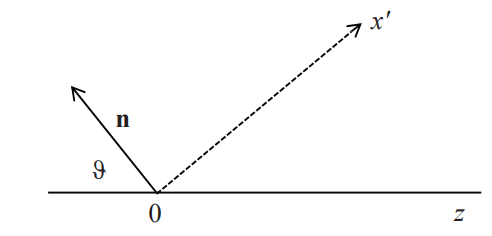 Для вычисления Iν введем картинную плоскость, проходящую через начало координат в плоскости (z,r) (рис. 5). Картинная плоскость перпендикулярна линии зрения наблюдателя, а нормаль n к ней составляет с осью z угол ϑ. Штриховой линией на рис. 5 отмечена линия пересечения картинной плоскости с плоскостью (z,r). Расстояние вдоль линии пересечения обозначено через x’.