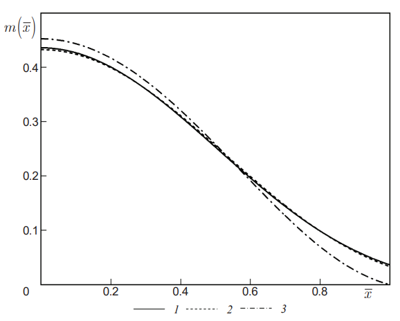 Рис. 1. Зависимость оптимальной скорости вдува решения задач 1–3 от координаты