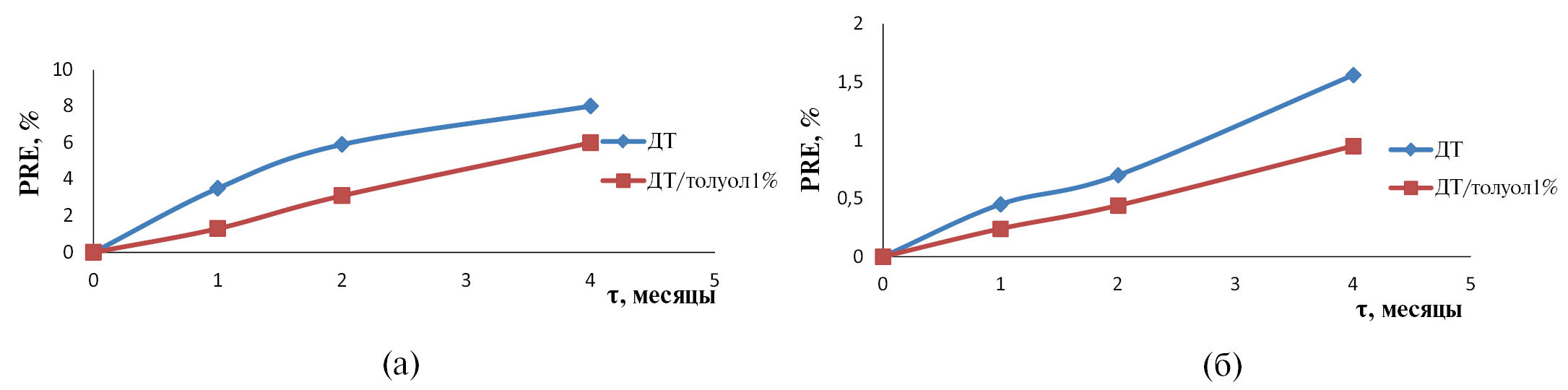 Влияние гамма-излучения на характеристики исходного ДТ сразу и через 4 месяца после гамма-облучения показано на рис. 1.