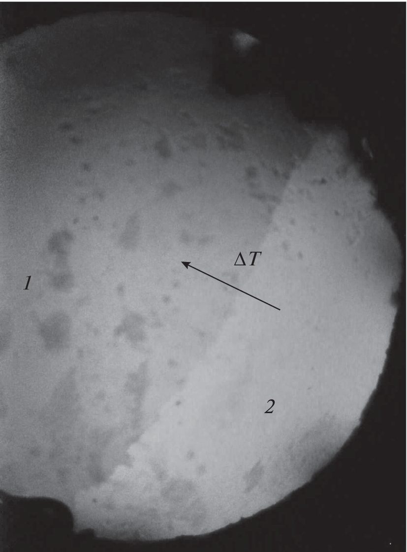 A method for the magneto-optical visualization of magnetic phases in ferrimagnets in the vicinity of the compensation point in the lateral temperature gradient is described. On the example of films of bismuth–gadolinium ferrite garnet, zones corresponding to collinear and non-collinear magnetic phases were observed, depending on the temperature and the magnitude of the magnetic field in the range from 0 to 10 T.