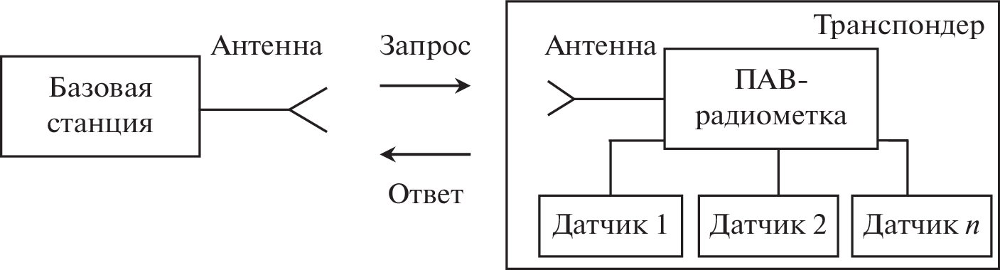 In this paper we present the results of the development of a radio-frequency system for remote monitoring of the state of protective containers with hazardous substances based on energy-independent transponders, which provide estimating the entire set of indicators of the state of the packaged cargo. The operating principle of the system is shown. The design of a transponder containing a radio tag based on surface acoustic waves using a multi-strip coupler, which provides switching signals from physical impact sensors, transmitting object identification data and reliable information about the current state of the product at the time of the survey, is considered. The experimental responses of the pulse responses of radio tags are presented. A practical implementation of a radio-frequency monitoring system that passed state tests is presented.