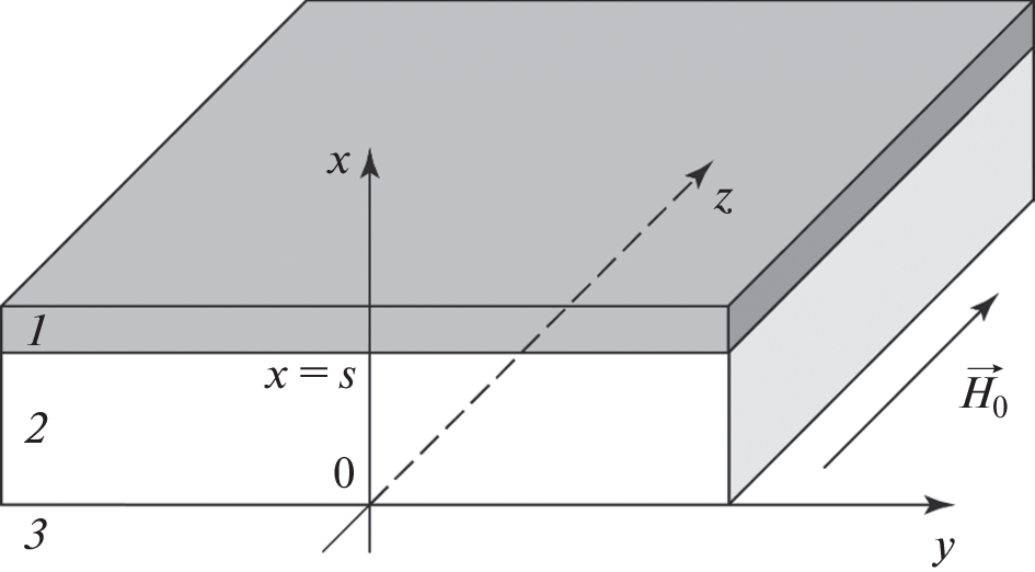 Электромагнитные волны в односторонне металлизированном касательно намагниченном бигиротропном слое (с примером расчета характеристик спиновых волн)