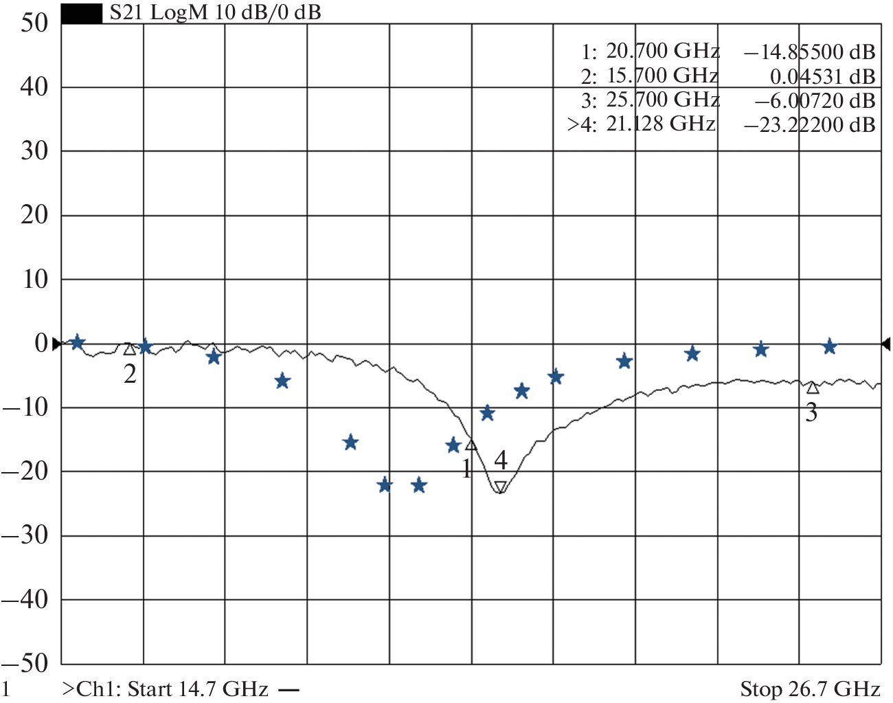 experimental samples have been manufactured, and their characteristics have been studied. It is shown that in the measurement frequency range of 14.7–26.7 GHz there is a smooth increase in the attenuation introduced by the absorbing screen with increasing frequency to a maximum value of 20–23 dB at a frequency of about 20 GHz, and then a smooth decline. The amount of attenuation increases as the length of the screen increases and can reach any value. The manufactured samples of the absorbing screen provide significant attenuation in the required frequency range with a small substrate thickness and can be successfully used in space equipment to ensure electromagnetic compatibility.