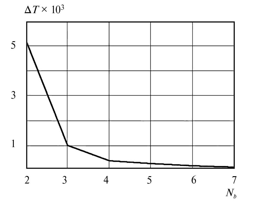 Рис. 2. Зависимость вариации коэффициента передачи ∆Т от числа базисных функций Nb.